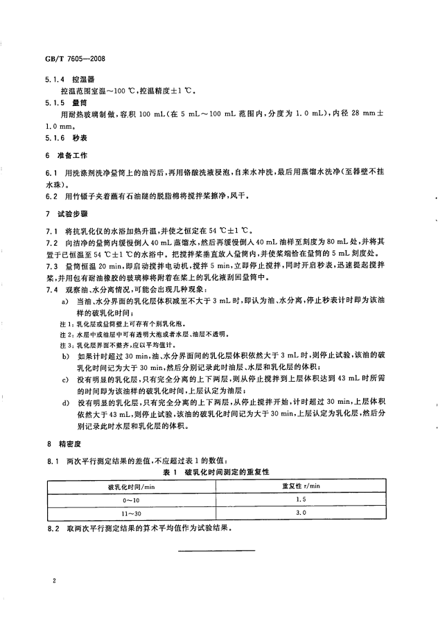 GB/T 7605-2008 《運行中汽輪機油破乳化度測定法》